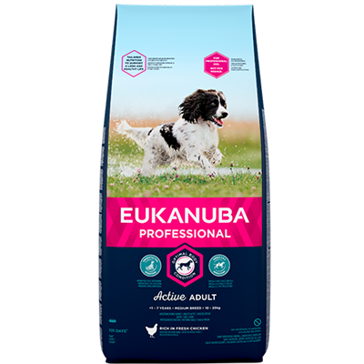 EUKANUBA Adult til Medium Breeds støtter din hund til at yde så ekstraordinært som overhovedet muligt, da det overholder alle de ernæringsmæssige krav, som mellemstore hunderacer har.